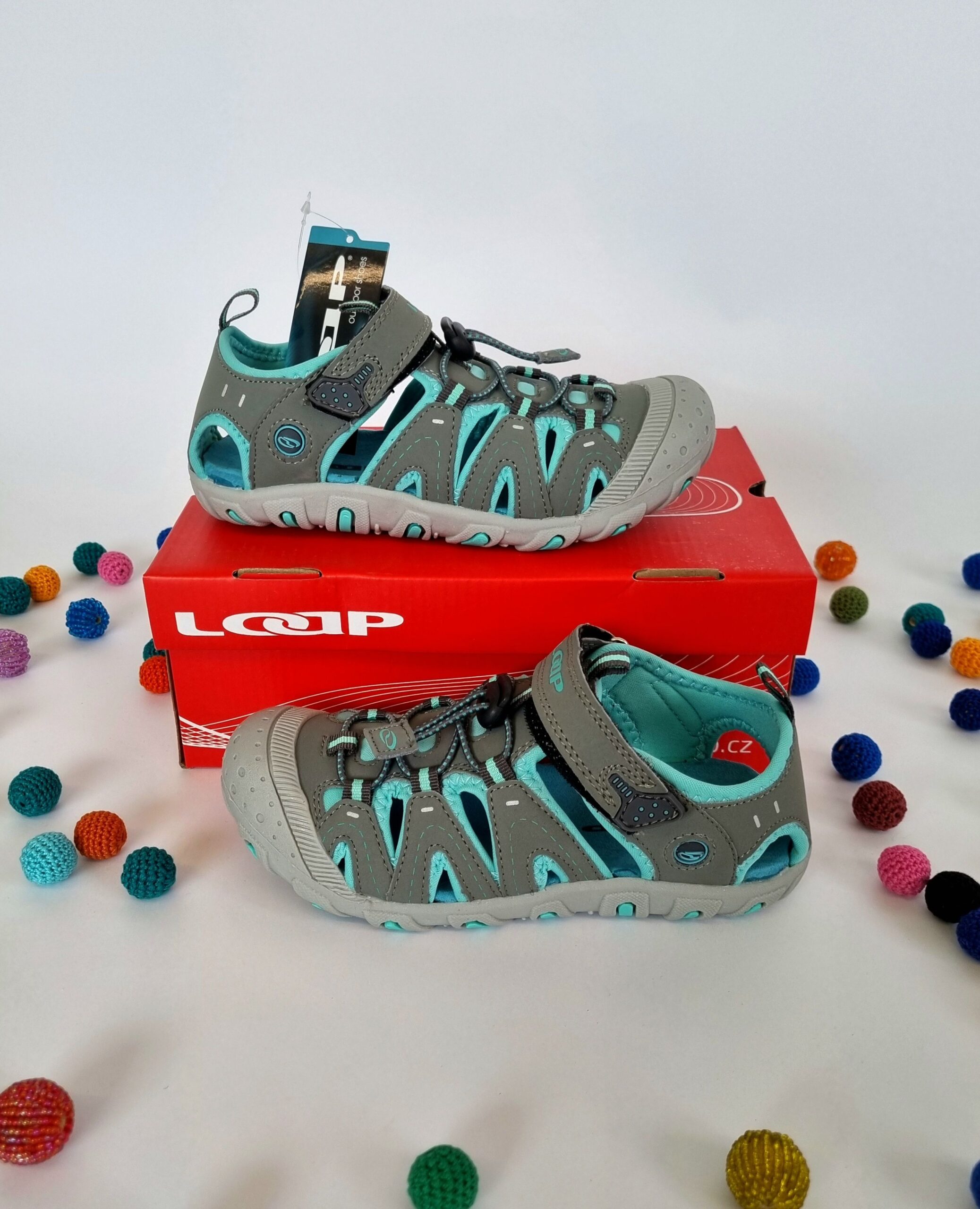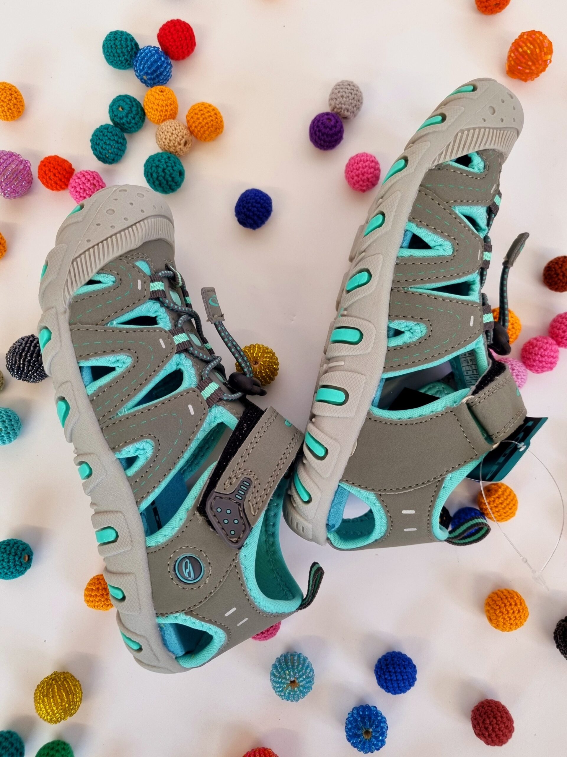 Sandalele pentru copii .Datorită proprietăților excelente de amortizare ale tălpii din phylon și microfibră, asigură confort pe tot parcursul zilei. Se pot strânge cu ajutorul benzii elastice cu opritor , în timp ce bucla de pe limbă și călcâi facilitează încălțarea. Datorită tălpii durabile, copilul se poate juca pe orice suprafață. Oferă un vârf închis care protejează picioarele copiilor. Partea superioară este confecționată din material PU de înaltă calitate, căptușeala este realizată din tricot, iar branțul combină phylon și microfibră. Talpa TPR conferă sandalelor o durabilitate excelentă.